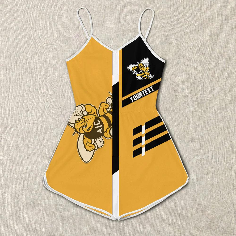 American International Yellow Jackets Women Romper Jumpsuit 3D Printed Team Logo Pattern