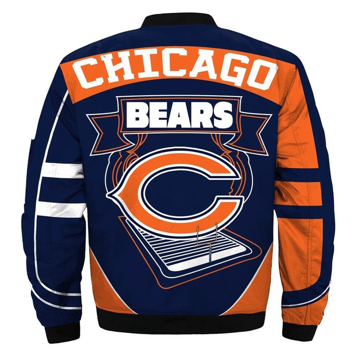 Chicago Bears Orange Fire Ball Dark Blue Bomber Jacket