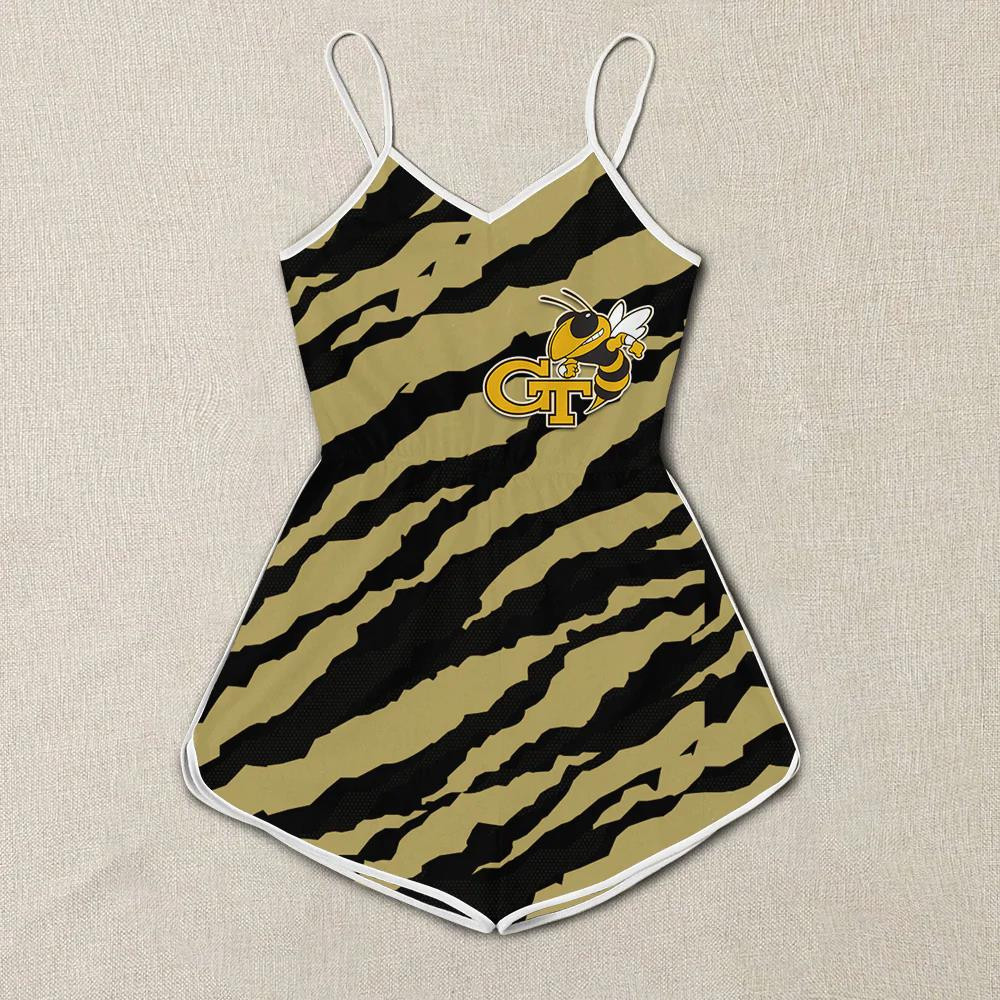 Georgia Tech Yellow Jackets Women Romper Jumpsuit 3D Printed Team Logo Pattern On Chest