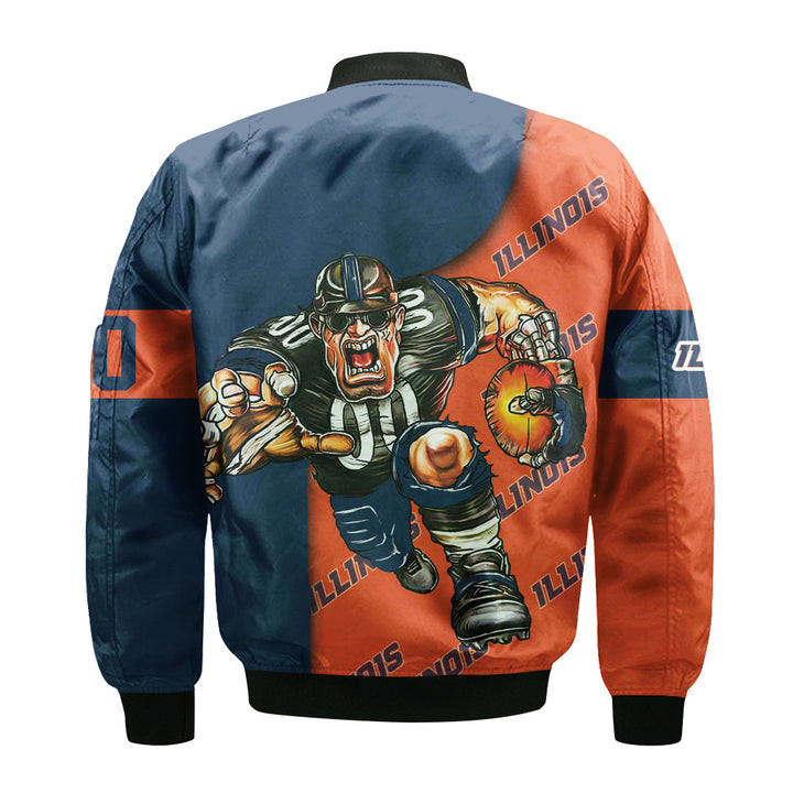 Illinois Fighting Illini Custom Number Orange Blue Bomber Jacket