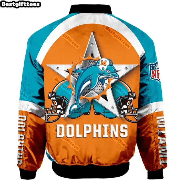 Miami Dolphins Orange Aqua Bomber Jacket