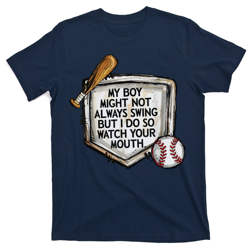 My Boy Might Not Always Swing But I Do Baseball Mom T-Shirt - Image 8