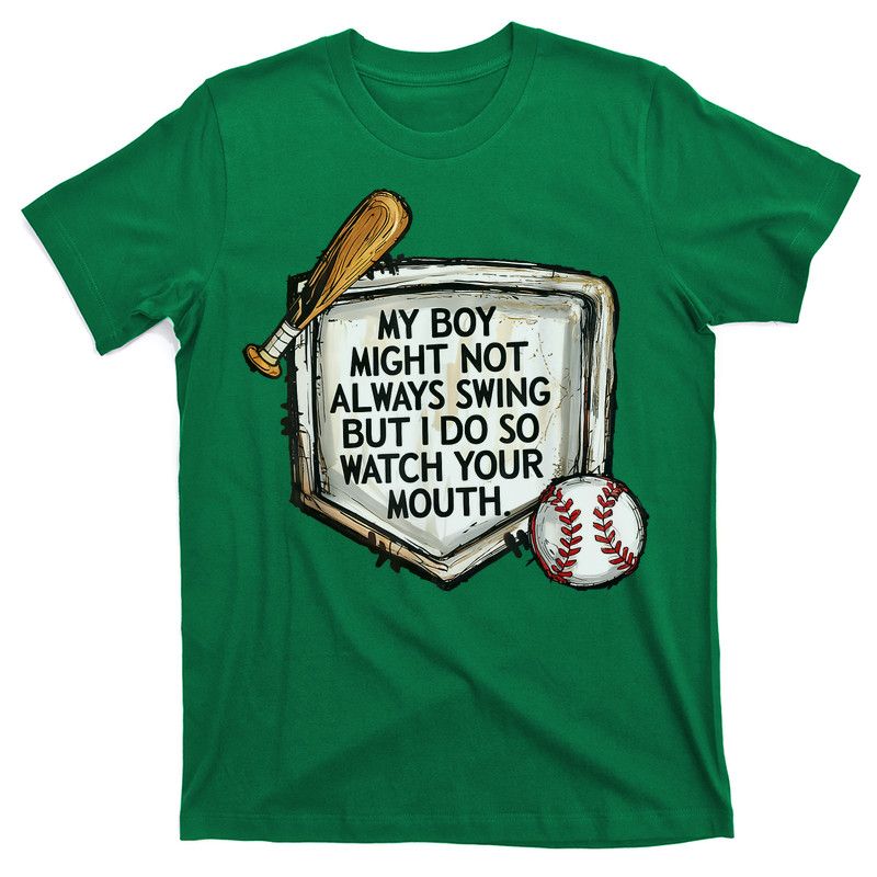 My Boy Might Not Always Swing But I Do Baseball Mom T-Shirt - Image 11
