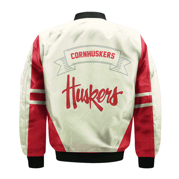 Nebraska Cornhuskers Red Cream Bomber Jacket V6