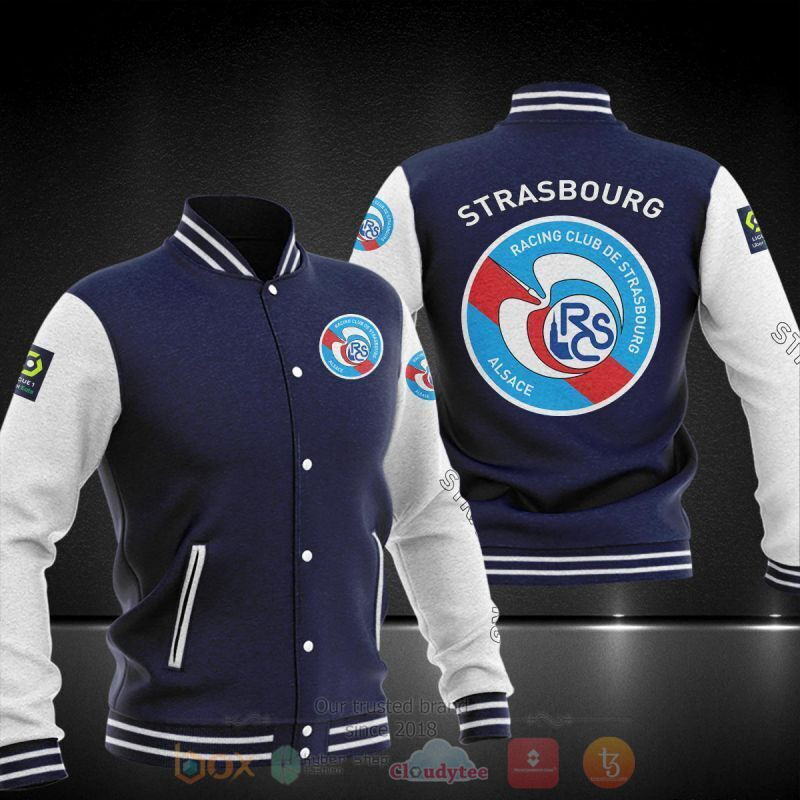 RC Strasbourg Alsace Dark Blue White Baseball Jacket