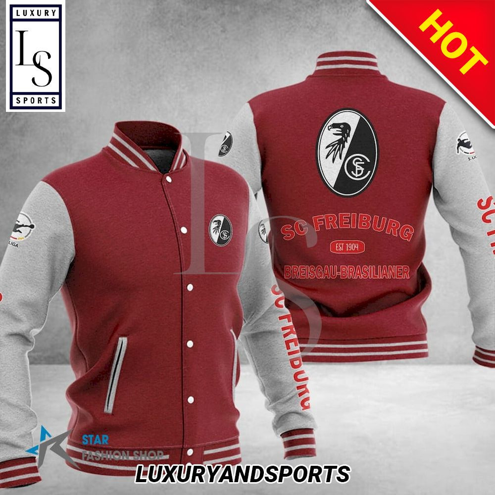 SC Freiburg Maroon White Baseball Jacket