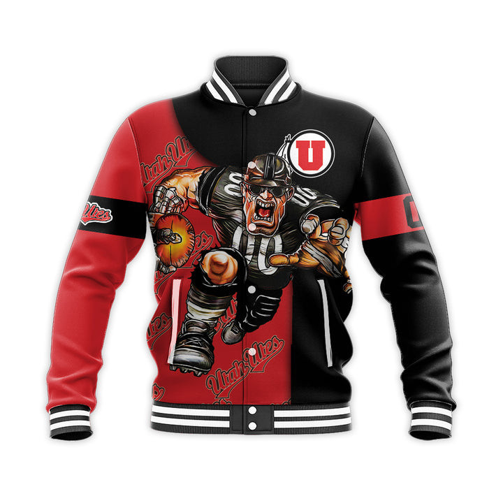 Utah Utes Custom Number Red Black Baseball Jacket V3