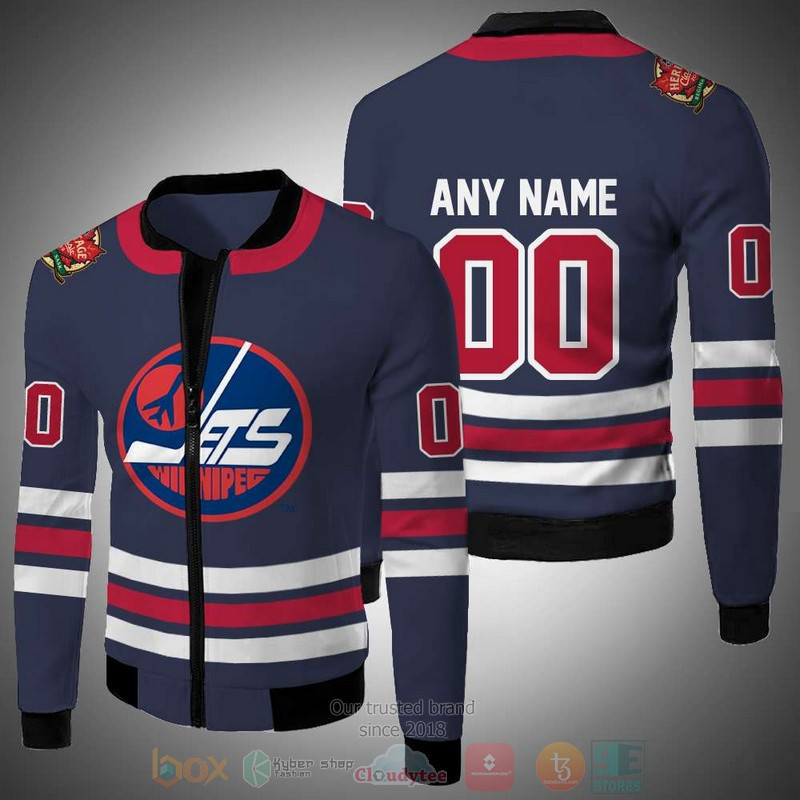 Winnipeg Jets Custom Name Number Blue White Bomber Jacket